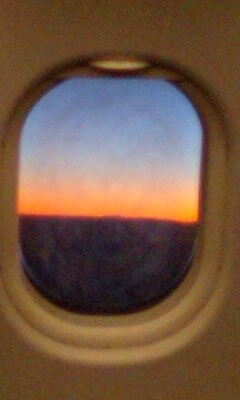 写真は朝3時45分くらいに撮った飛行機の窓の外である(´∀`)